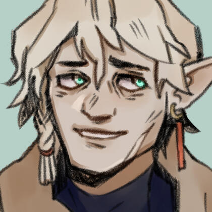 27 | He/Him | Orlesian elf taken in by Dalish | Archer RogueEtoile is a master of misdirection, always avoiding serious topics, like his past, in favor of asking whether you think nugs are cute or not. Or, oh, what's that over there?He'll talk as much as he likes, trying his best to make light of any situation, but he truly says very little. Despite this, he is very easy to get along with, mostly by his own design, as he desperately wants people to like him. Most see him as being nice and agreeable despite his positively sigh worthy one-liners.Despite having embraced what he learned as part of clan Lavellan, and claiming to hate Orlesian politics and the Game, Etoile very easily gets wrapped up in the intrigue and is good at it, to everyone's surprise. He is also very cut-throat, the complete opposite to his normal persona. Absolutely terrifying.Etoile's hair is a very light blonde and always, without fault, messy. Many have tried to help him tame it, without success. He somewhat embraces this fact now and has taken to tying in a little braid. His eyes were a dark green but have, since gaining the anchor, started becoming lighter. He has a long scar on the bottom of his jaw from a hunting accident.-- Past --Etoile was raised by an Orlesian noble family that was unable to have an heir at the time. He was originally a servant's son. They treated him largely like a doll or novelty and never let him leave home or be seen without permission. Eventually, the nobles had their own child and became bored with the elf, to the point of neglecting him.The family's disinterest in him gave him the ability to finally sneak out on his own and he met with clan Lavellan members that occasionally came to trade. Etoile would meet with the elves whenever they were nearby and eventually, at 15, Etoile packed up and left with them.Etoile never fully became "Dalish" but the clan was generally more of a home than where he grew up.